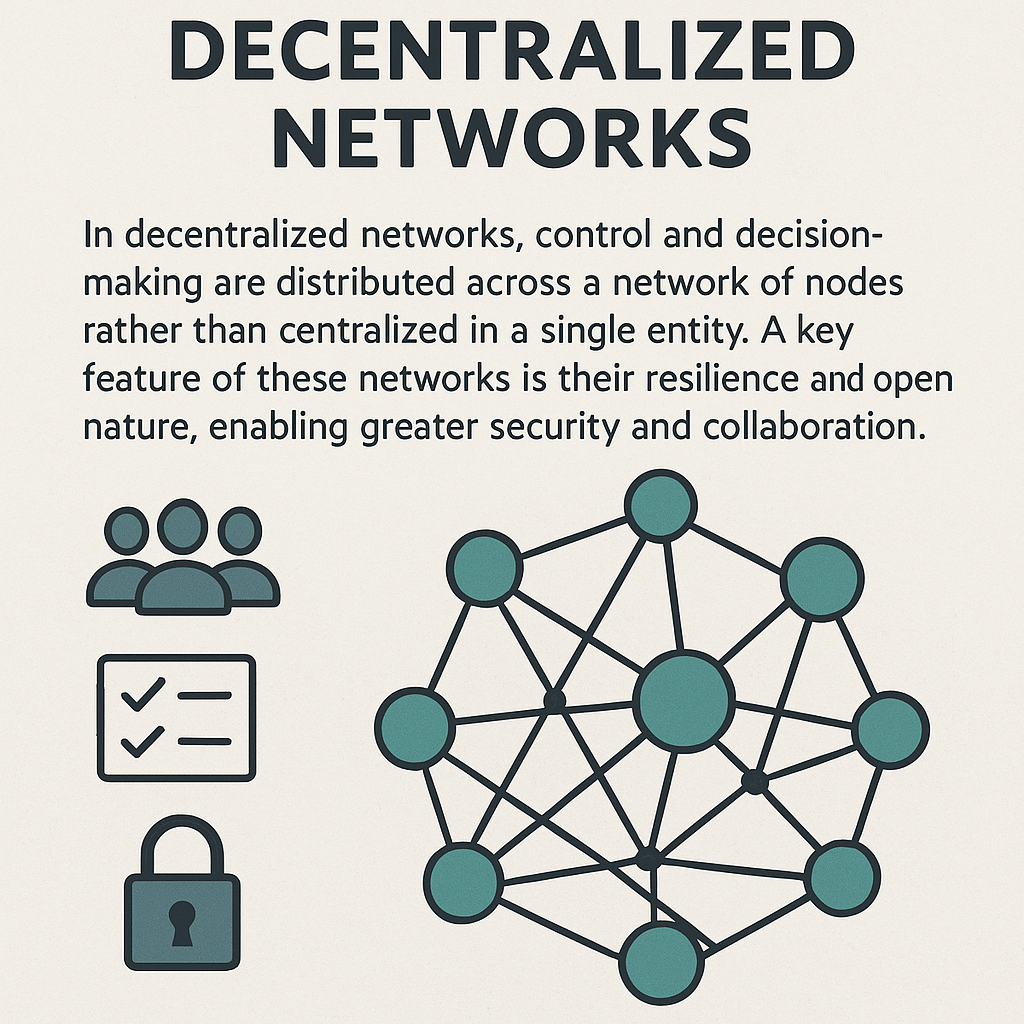 Philosophy Decentralization champions trust through transparency and resilience through redundancy. These networks reject top-down hierarchy and instead empower individual nodes to self-authenticate, participate, and evolve collectively. They’re designed around principles of self-sovereignty, trustless validation, and shared stewardship. Iconic visuals—like cryptographic keys, overlapping halos, and signal-pulsed pathways—reflect identity, memory, and collective motion.
