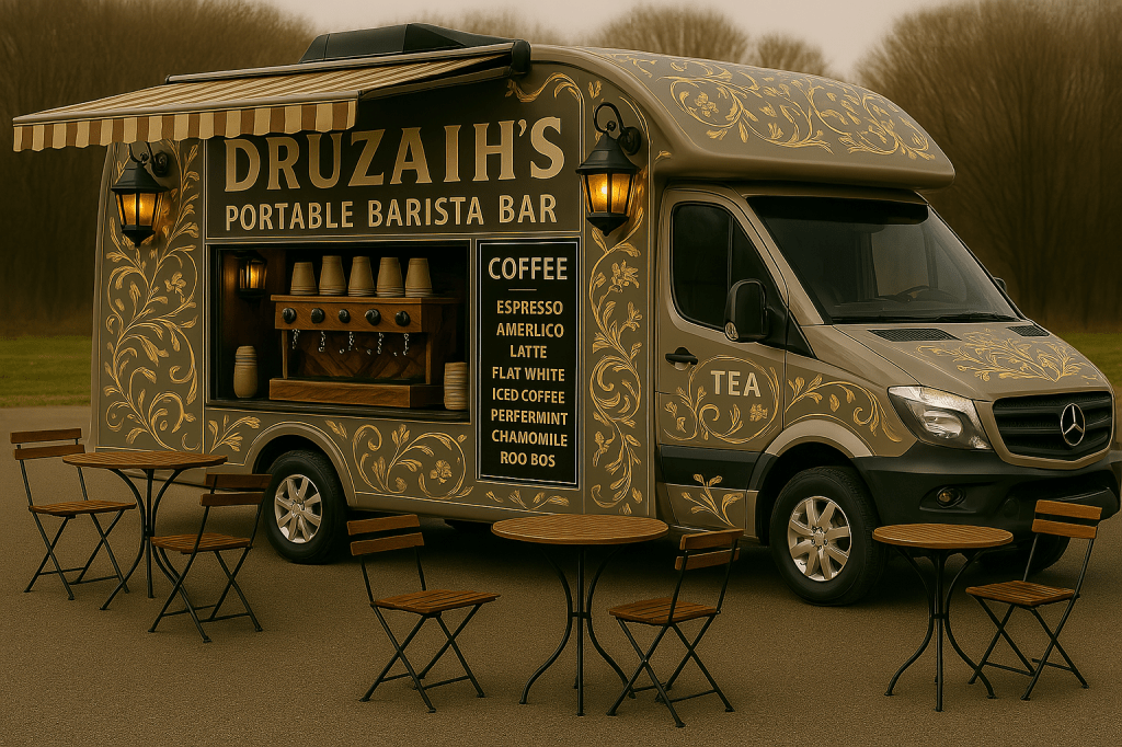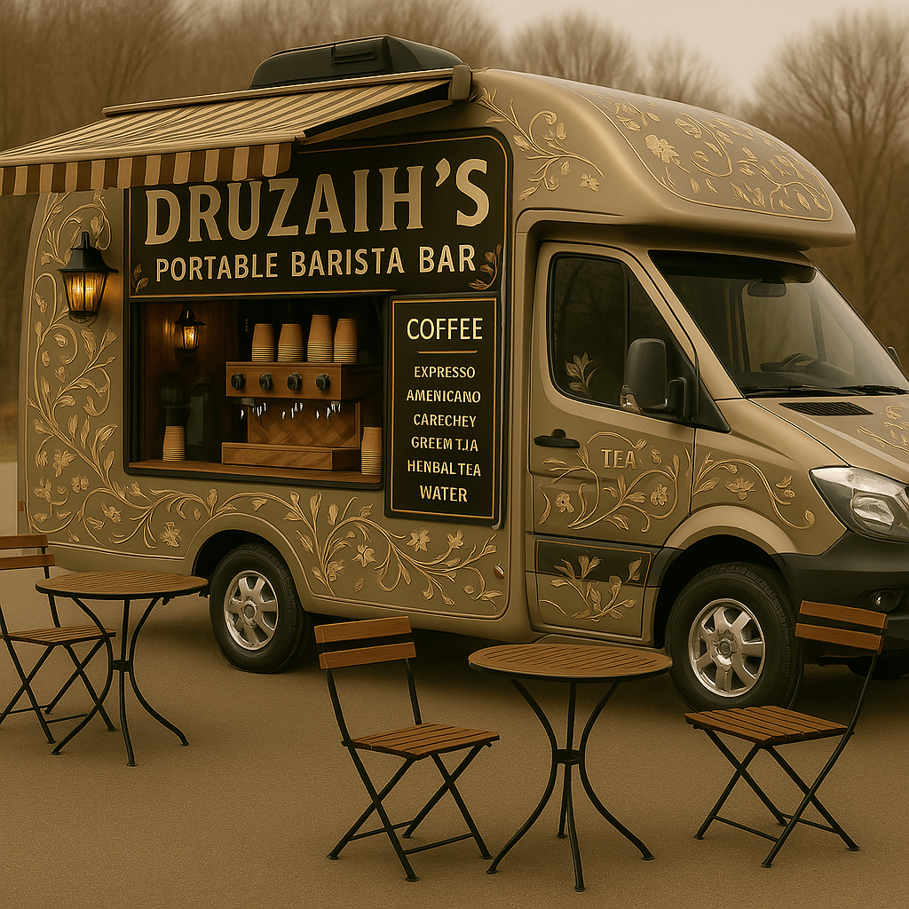 We LOVE This DESIGN. How about you? This is an Airstream Custom Build, Ohio, for the DrüZAIH’s PORTABLE BARISTA BAR. A great way to increase the crypto conversations. This is for use at beachwalks, outdoor malls, flea markets, farmers markets, concerts, showroom floor events. For franchise info (CONTACT US)